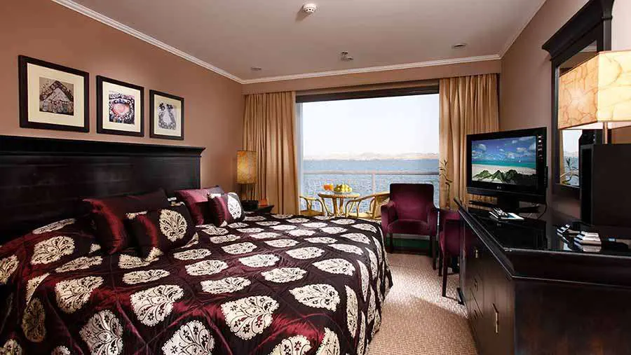 All cabins have large panoramic sliding windows with a Nile view and private balcony area and each is fully air-conditioned (individually controlled) and furnished with generous closet and wardrobe space.  Cabins also feature the following as standard: